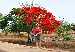 [Płomień Afryki]. Pięknie kwitnące niezbyt duże drzewo z rodziny bobowatych (Fabaceae) pochodzące z Madagaskaru, lecz obecnie spotykane w wielu rejonach świata o tropikalnym klimacie[1][2]. Osiąga wysokość do 9 m i ma zazwyczaj szeroką kopulastą koronę o średnicy nawet dwukrotnie większej od wysokości. Ma ciemnozielone podwójnie pierzaste liście (podobnie jak u swojskiego grochodrzewu). Kwitnie obficie dużymi pomarańczowoczerwonymi kwiatami, w których jeden płatek jest biały z żółtą lub czerwoną plamką (odmiany uprawne mogą mieć kwiaty innych barw i kształtu). Owocem jest ciemnobrązowy strąk o długości do 60 cm. W okresie suszy drzewo traci liście stając się niezwracającym uwagi elementem krajobrazu.| [Data utworzenia: 13 maja 2023] |